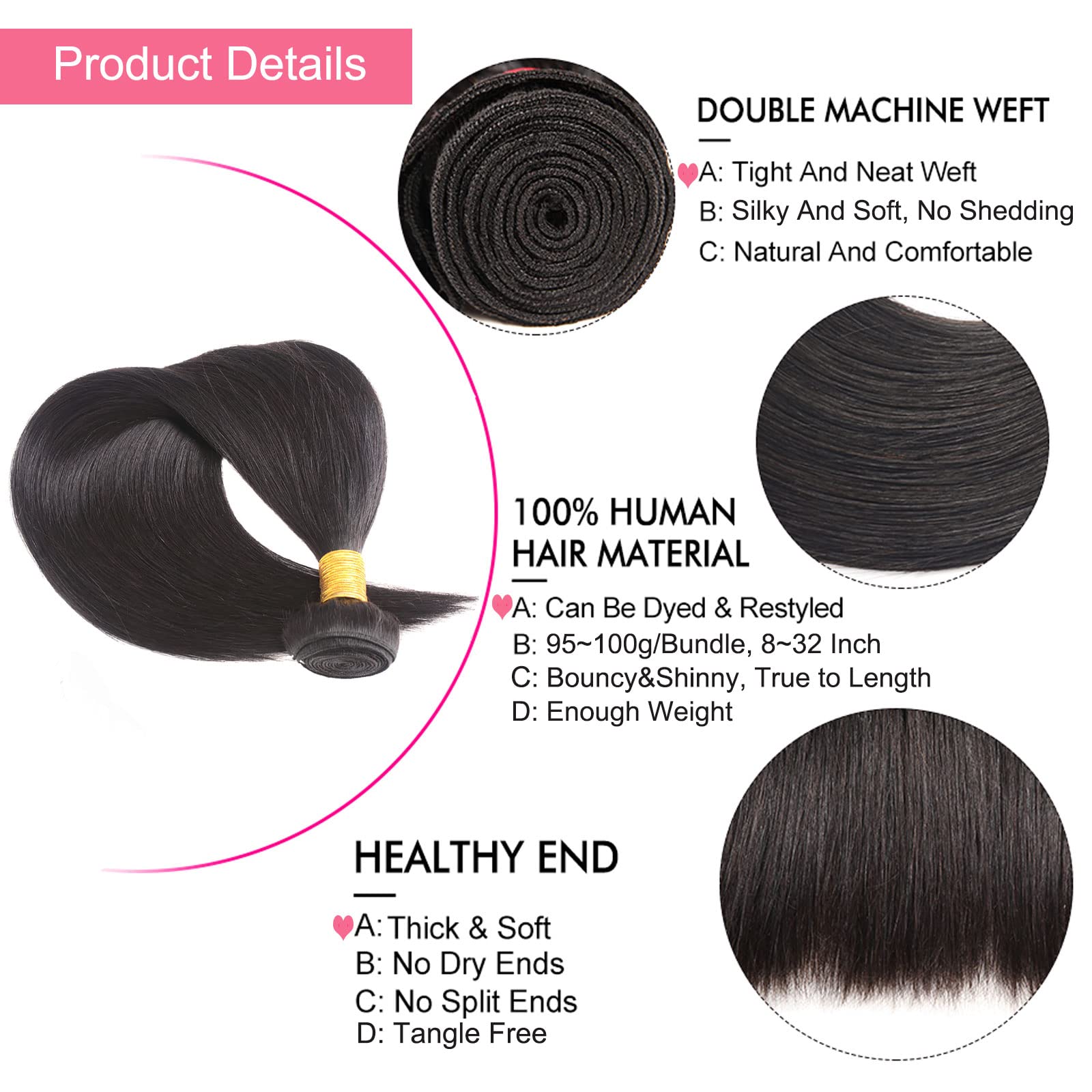 Huarisi 1 Bundle Human Hair Straight 8 Inch Short Hair Weave Bundle 8a Unprocessed Brazilian Virgin Hair 100 G Thick Remy Hair Double Weft For Women Amazon De Beauty